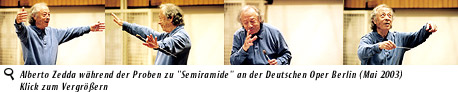 Der Rossinischen Musik die richtige Lebenskraft einzuflössen – darin besteht das einzigartige Verdienst des Musikwissenschaftlers, Autors, Lehrers und Dirigenten Alberto Zedda. Von 1980 bis 1992, den „goldenen Jahren” der Rossini Renaissance, ist er künstlerischer Berater des Rossini Opera Festivals in Pesaro, und seit 2001 sein Künstlerischer Leiter. Er ist der „Kutscher eines feurigen Gespanns, der seinen Pferden mal freien Lauf lässt oder sie in engen Zügeln hält und damit in einem abwechslungsreichen Spannungsverhältnis für eine perfekte Fahrt sorgt” (Reto Müller). Wenn Zedda auf das Podium steigt, sprüht er vor jugendlicher Kraft, überträgt seine Begeisterung auf die Interpreten und lässt das Publikum aus dem Häuschen geraten. „Eigentlich sieht Alberto Zedda aus wie ein Komiker in einer Komödie von Eduardo de Filippo; aber wenn er mit ausladender plastischer Körpersprache Rossini dirigiert, dann explodiert der kleine hagere Mann förmlich. Man sieht: er ist in seinem Element”, schreibt Dieter Kranz.
